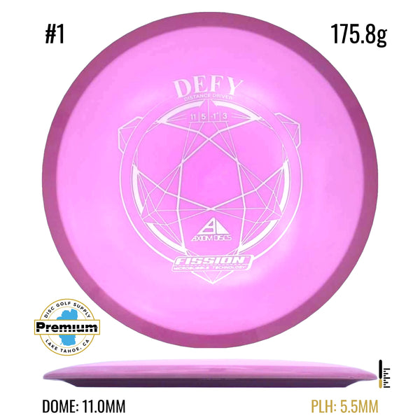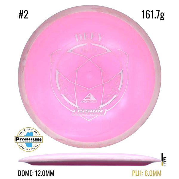 The Defy is straight with a nice bite of overstability at the end, and is best described as a more stable MVP Photon or a longer Axiom Clash. Like the Clash the Defy exhibits remarkable resistance to turnover even at high power. Players seeking a long straight power driver will appreciate the line-locking tendencies of the Defy, and throwers not fully powering the Defy will still get a highly useable long overstable disc.
