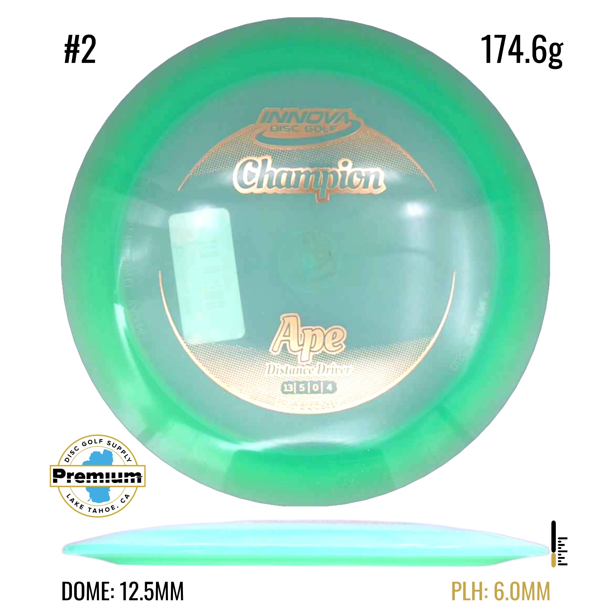 The Ape can handle the raw, primal power of disc golfs biggest arms. Extremely fast and stable, the Ape is a "must have" distance driver for windy conditions and sharp doglegs. Sidearm drivers will learn the Ape is more than capable of standing up to even the most intense torque. The Ape is an outstanding choice for backhand or sidearm throws as well as a variety of niche flex shots. With less high speed turn than a Boss, the Ape is not recommended for players who throw less than 300ft.