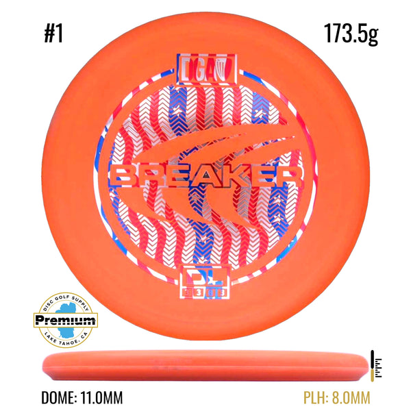 The Breaker is an overstable putt and approach disc making it great all types of approach shots. The Breakers low profile and flat top give it a natural grip in your hand both forehand and backhand. The Breaker is a go-to disc perfect for all skill levels and can be used in all types of wind conditions.