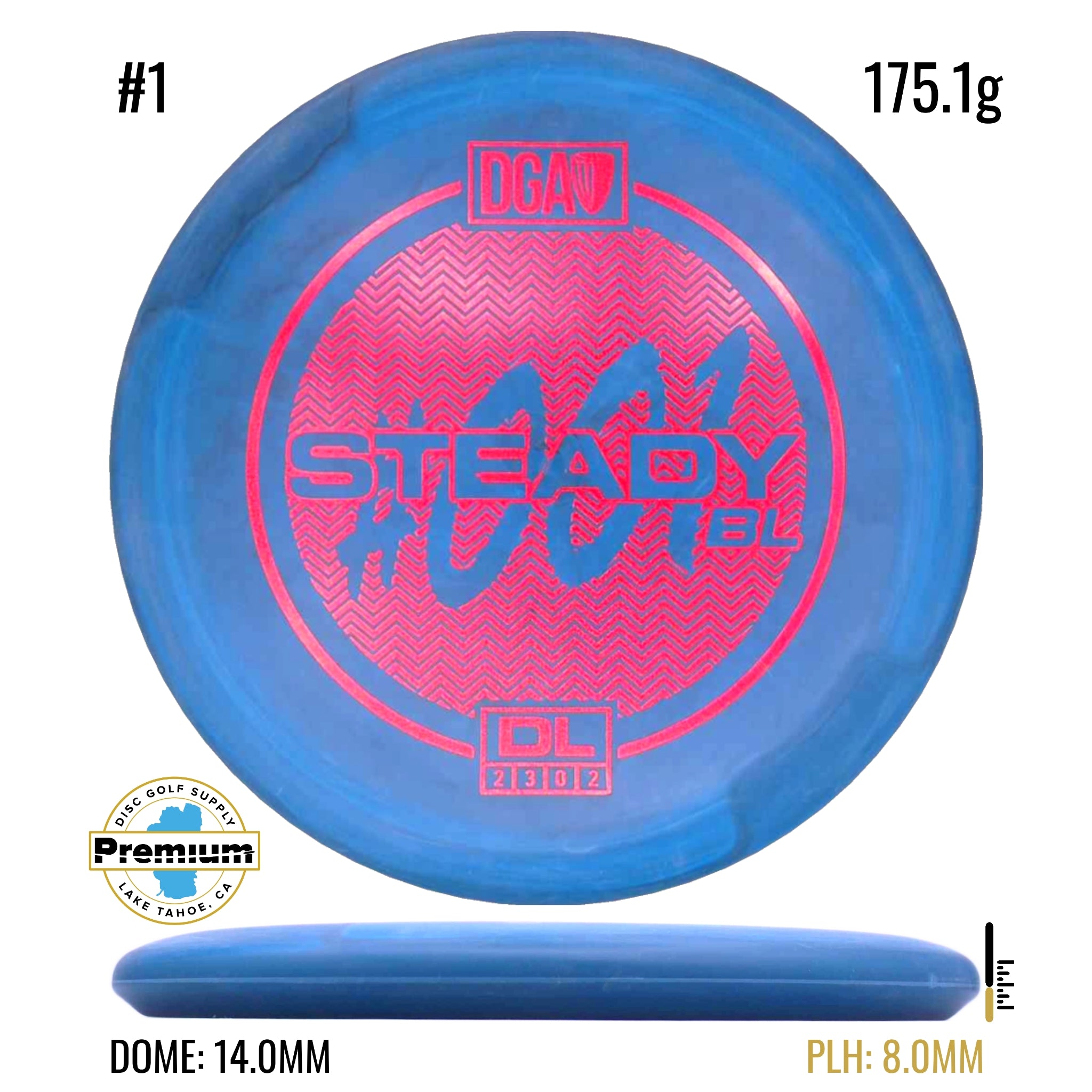 The DGA Steady BL (beadless) is a versatile putt and approach disc that has many of the same flight characteristics as the original Steady with the addition of a smooth beadless bottom edge. At low speeds, the Steady BL putter has a hyzer finish and with added speed, the putter provides a steady straight flight path. This putter feels great in the hand and will be a perfect fit for those looking for that smooth feel and clean release that this beadless putter offers.