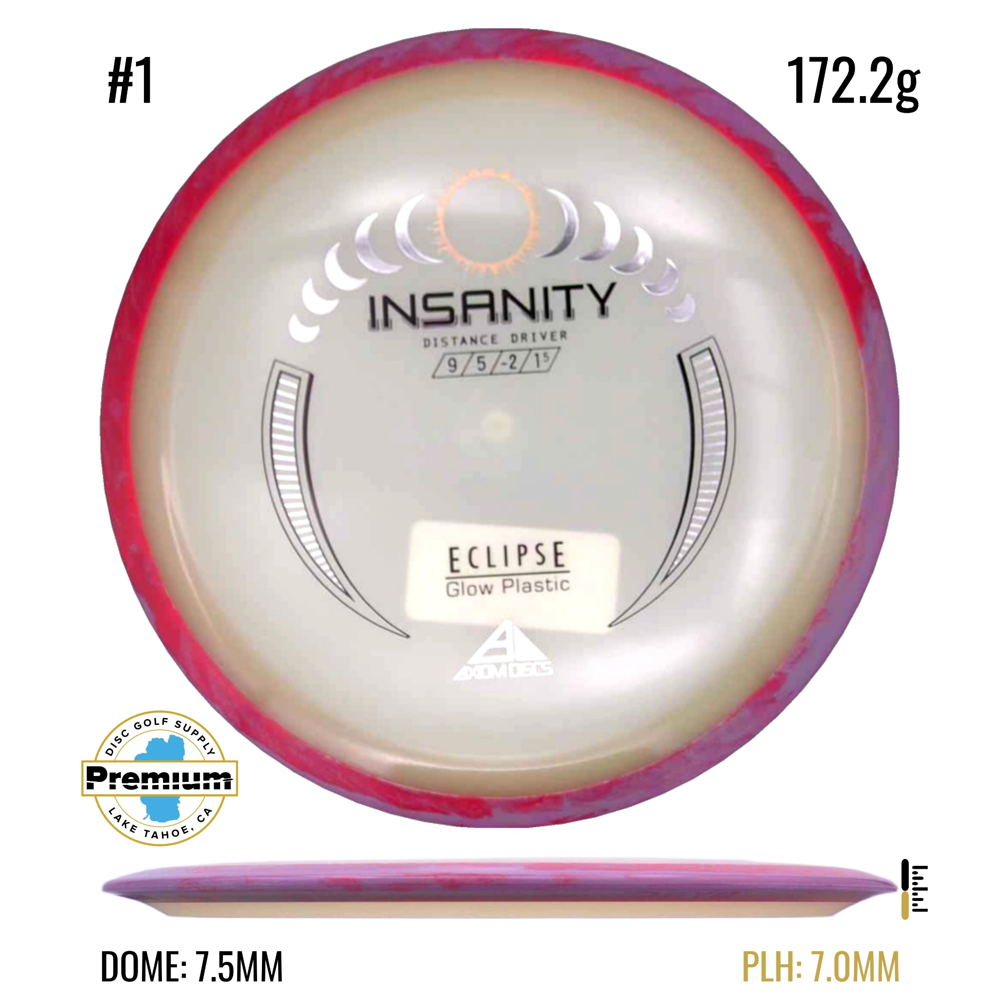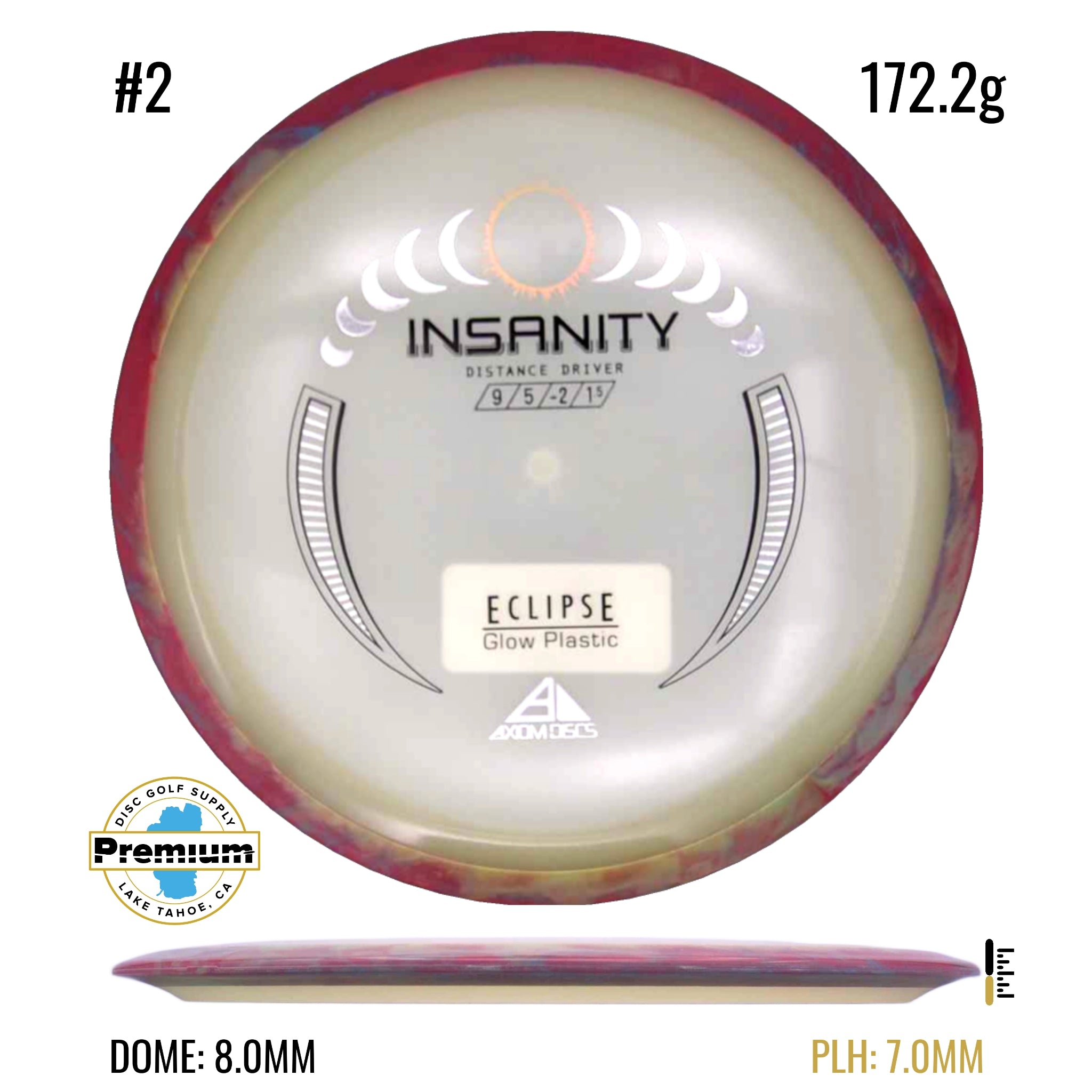 The Insanity is best described as a worn-in MVP Inertia, with slightly more high-speed turn and a diminished fade. For average power throwers, the Insanity will be remarkably straight, while high power throwers can execute precise flip and turnover lines with ease. Whether you’re looking for that sweet-spot worn disc flight, or you’re looking to achieve bigger Inertia lines with less power, give Insanity a shot.
