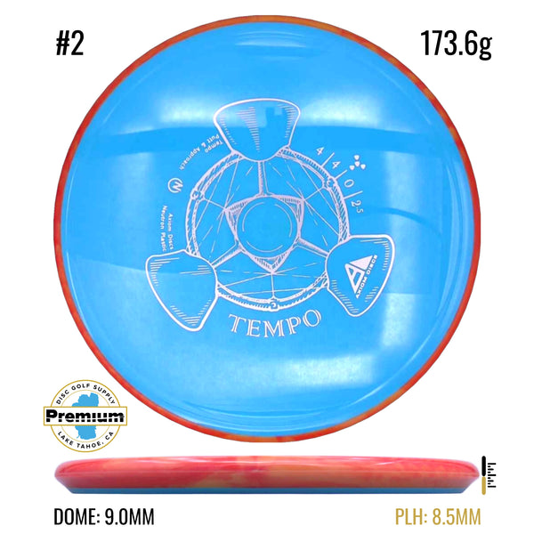 Releasing with flight numbers of 4 | 4 | 0 | 2.5, the Tempo excels as an overstable putt and approach disc thanks to its low profile and flat flight plate. Power throwers may find a small amount of turn before the torque resistance and reliable fade kick in for its forward pushing finish, while lower power throwers will find a straight-to-overstable thrower good for windy days and consistent approach angles. See what all the hype for the Tempo is about by grabbing your own!
