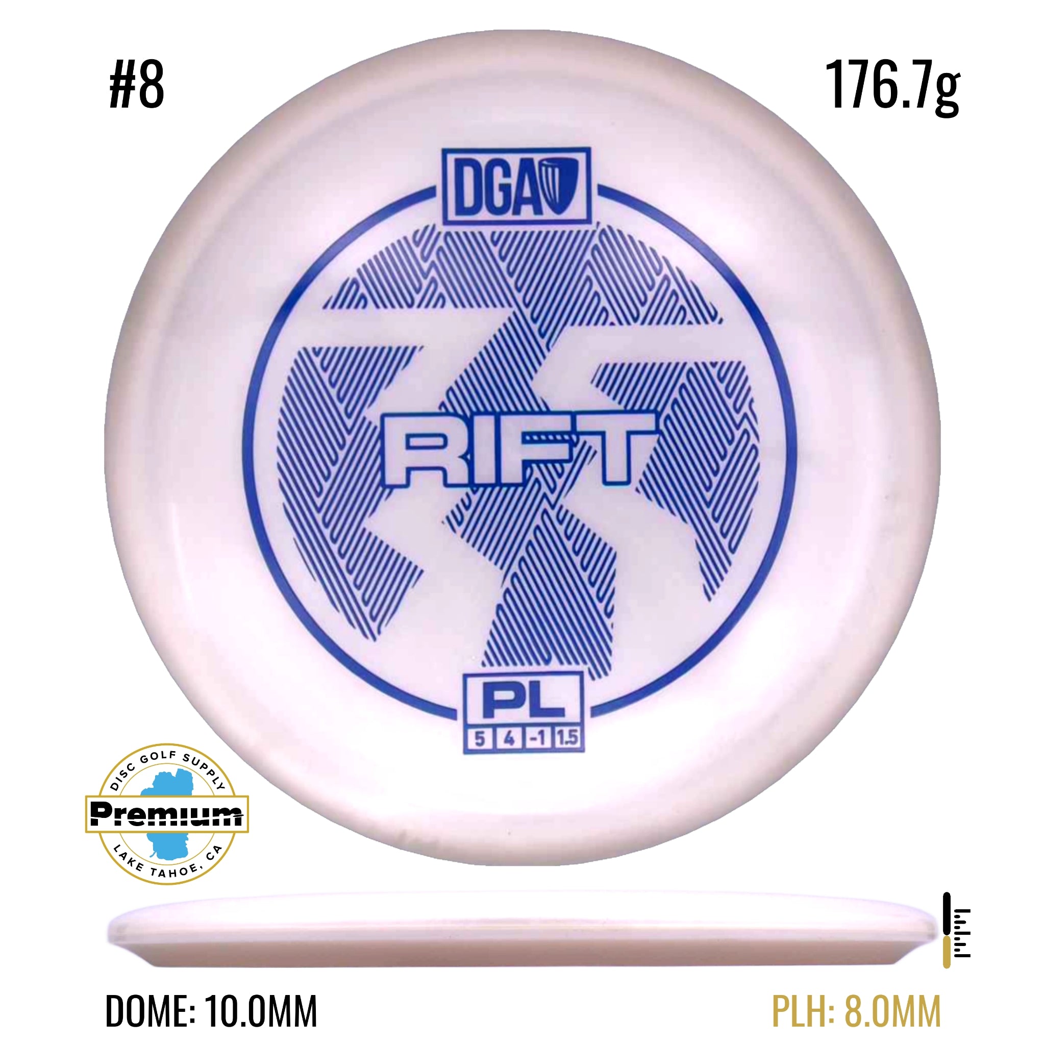 The DGA Rift is an amazing point and shoot straight-flying midrange disc with favorable glide. This midrange can be used in many different situations and really shines for straight tunnel shots, slight turnover lines, and slowly fading hyzers. Grab a few, because you will be reaching for the Rift time and time again!