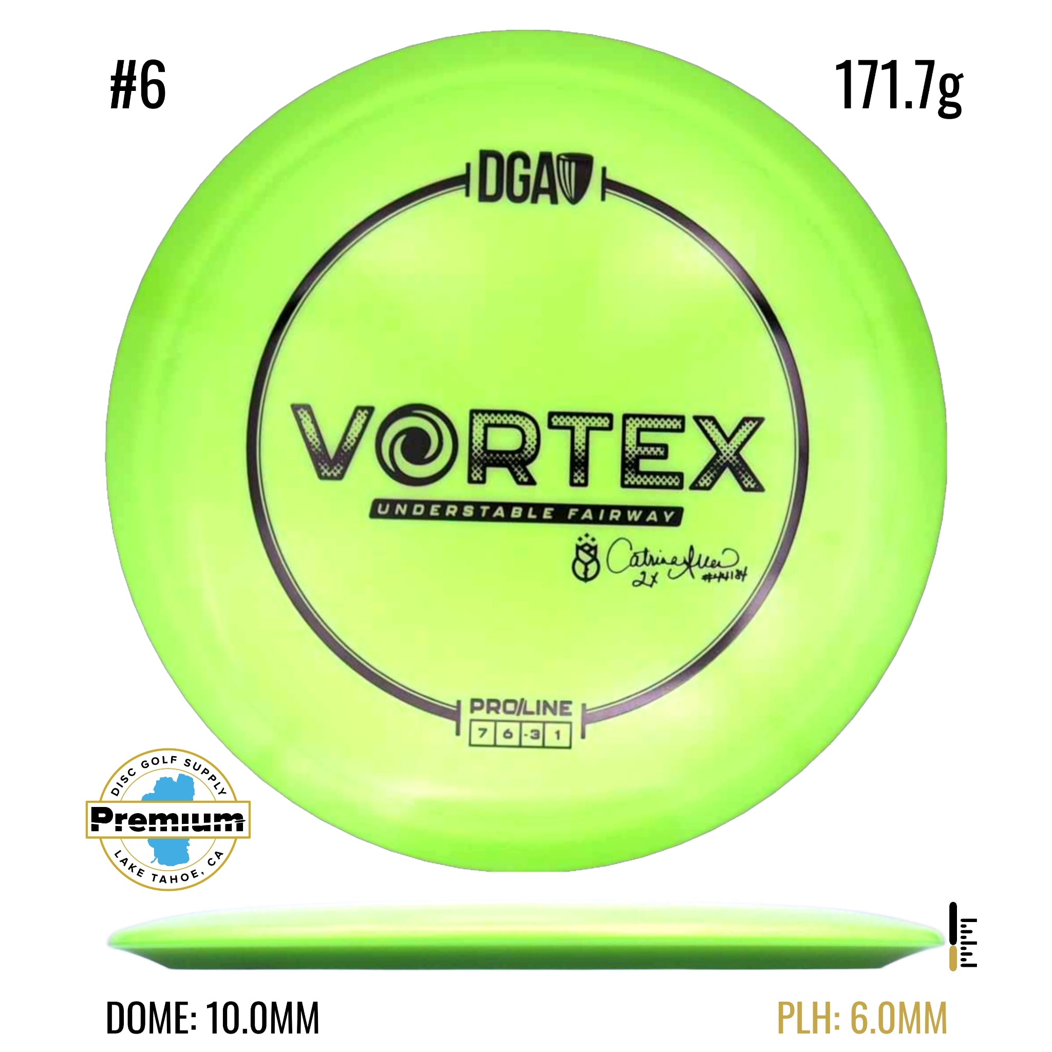 The DGA Vortex is a speed 7 fairway driver designed in collaboration with 2X World Champion DGA Team Member Catrina Allen. The Vortex is easy to control, with great glide and a fair amount of turn. It will be a great choice for newer players and skilled veterans alike. The stock ProLine Vortex will now feature this new stunning swirly blend which makes each one super unique!