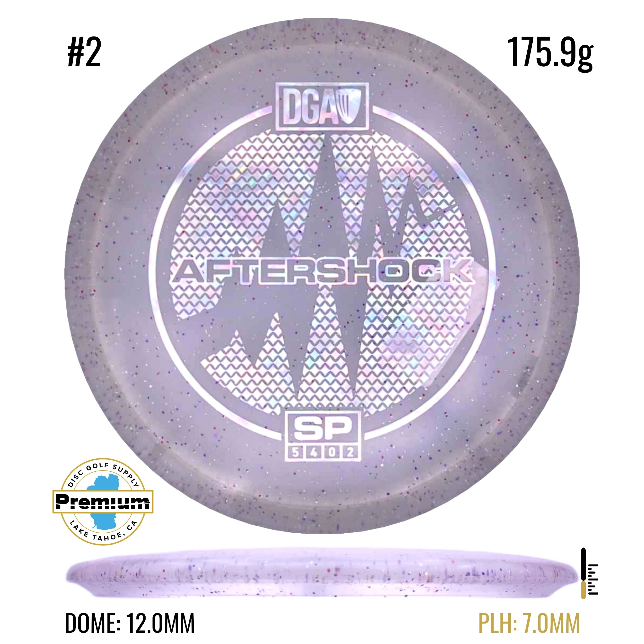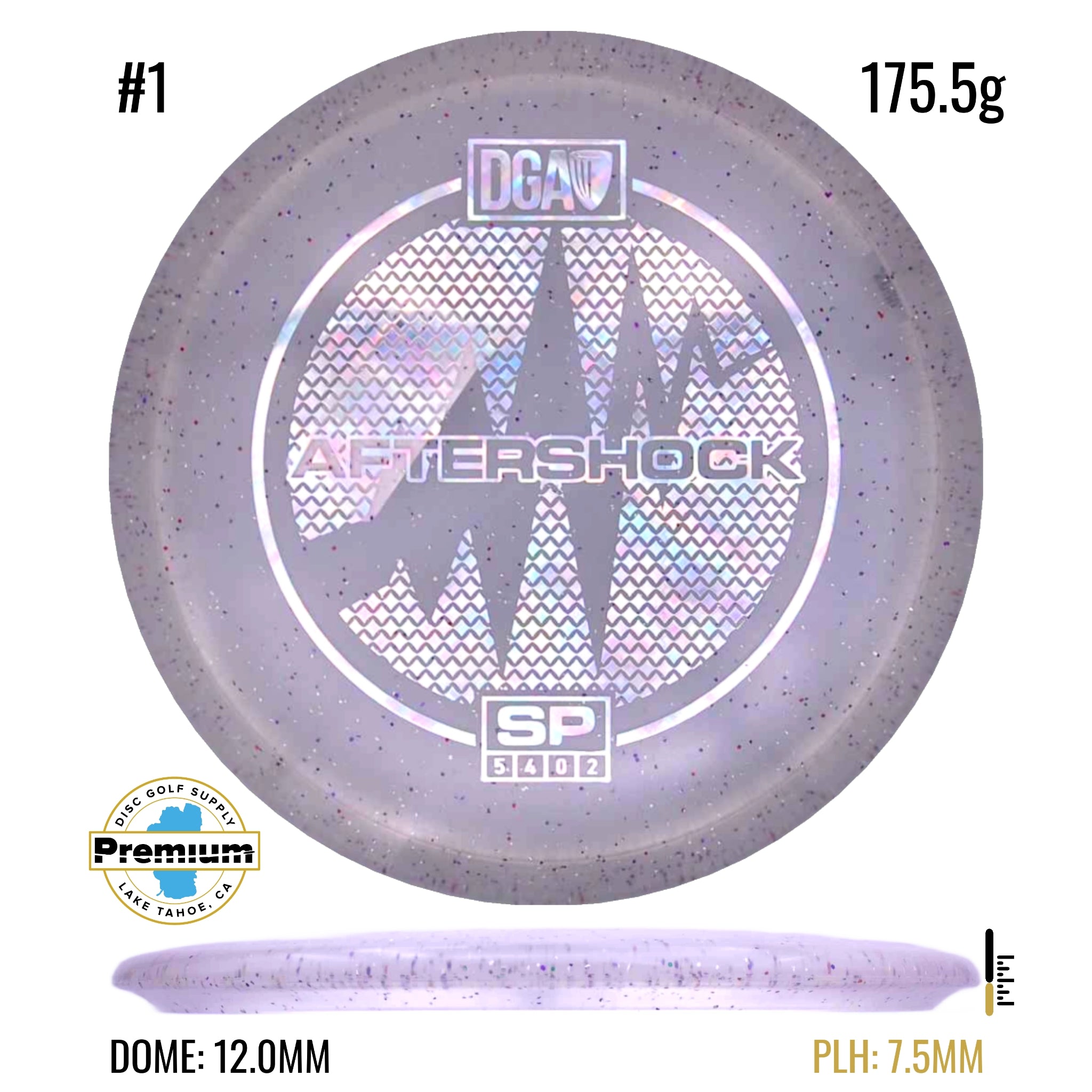The DGA SP Line Aftershock is a slightly stable mid-range disc that holds reliable lines. It can be thrown on straight flight paths, as well as trustworthy hyzer lines. You can use the SP Line Aftershock off the tee, or for long-range approach shots. This disc can handle any arm speed and sticks to the line that you put it on. The SP Line Aftershock is a great mid-range disc for all players!