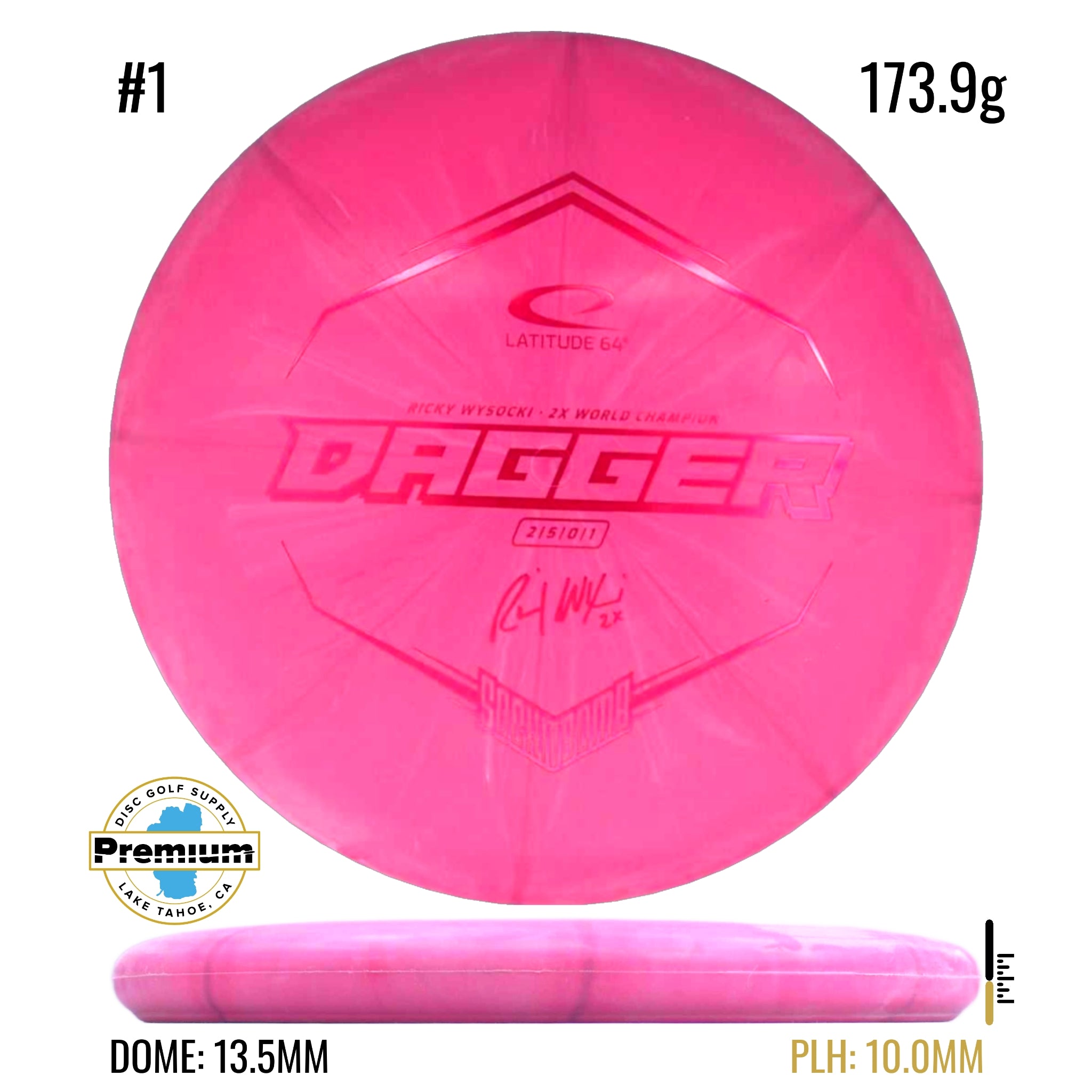 The Dagger is a deep dish putter with a bead. The deep dish means that more air can be trapped underneath the disc, making the Dagger stay longer in the air. The slow and stable flight gives you more control in your short game.