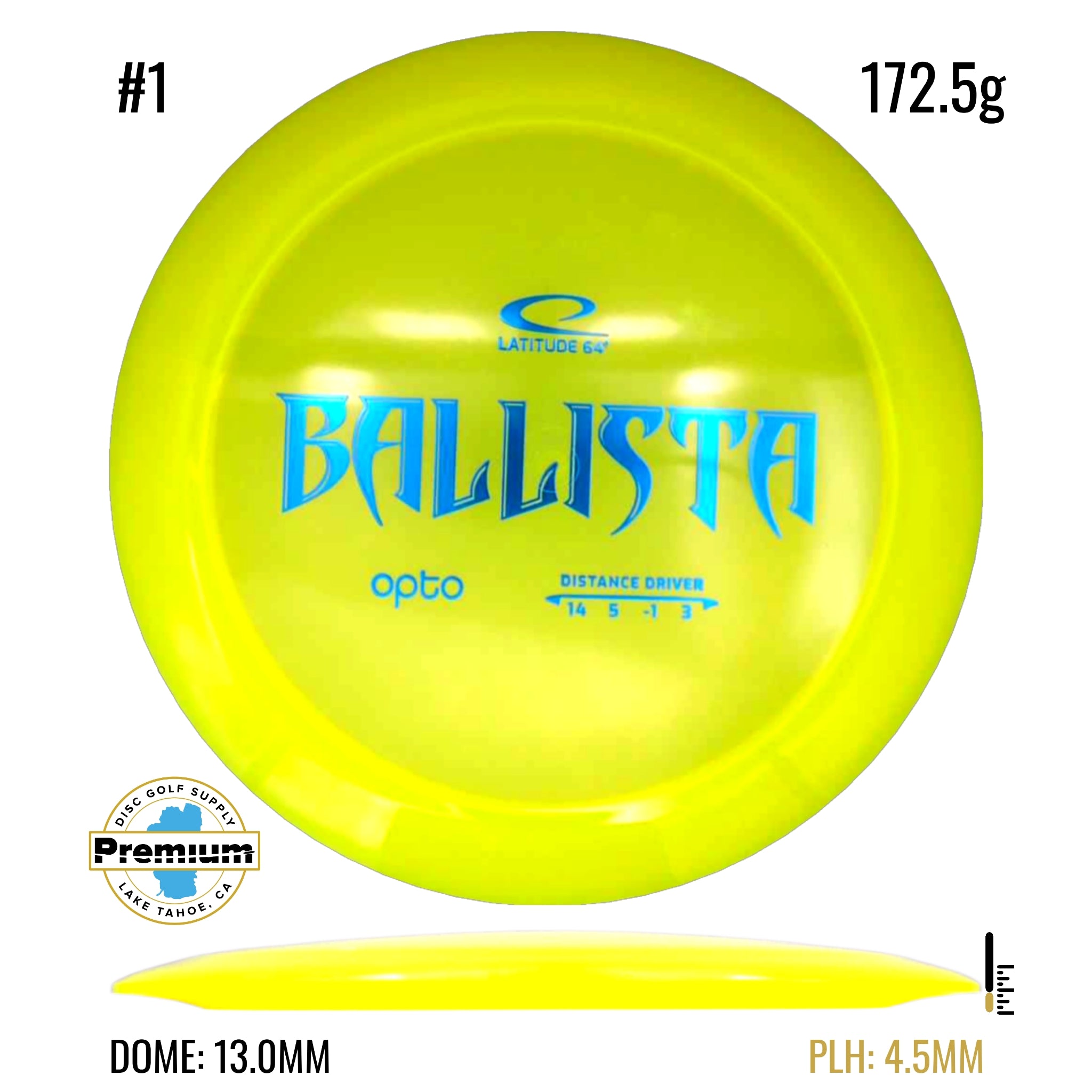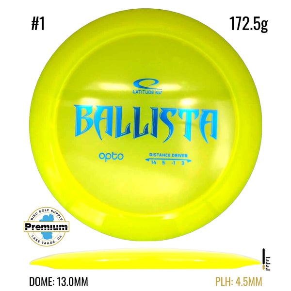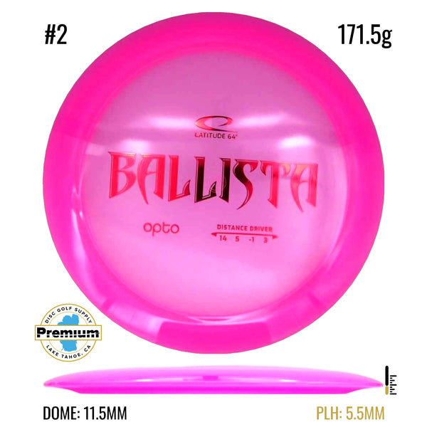 Tired of choosing between speed and accuracy on the disc golf course? With the Ballista from Latitude 64 you can get the best of two worlds. One of the fastest discs in the world combined with a dependable flight path makes the Ballista a must-have in your bag. It will be overstable for beginners and slightly understable for experienced players.