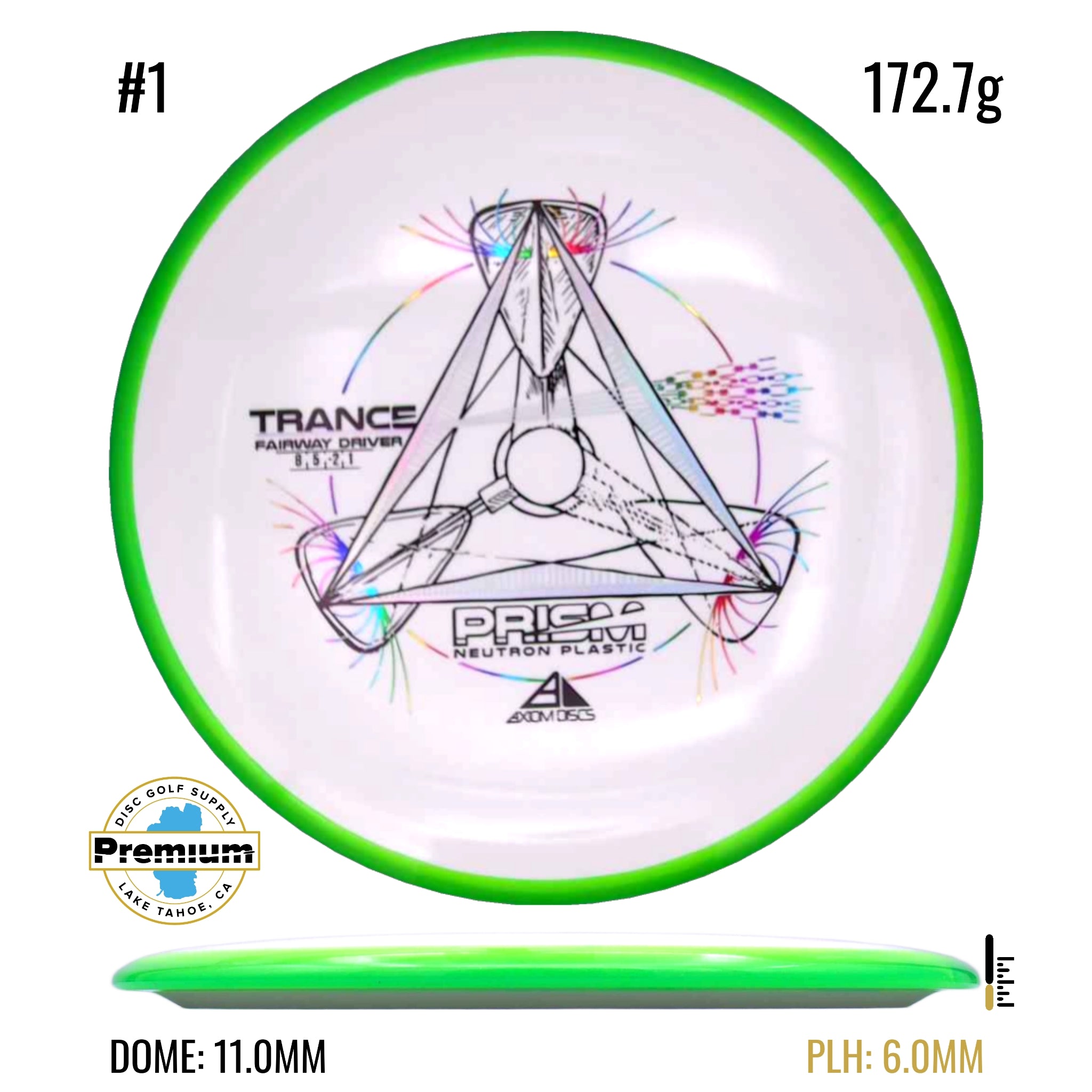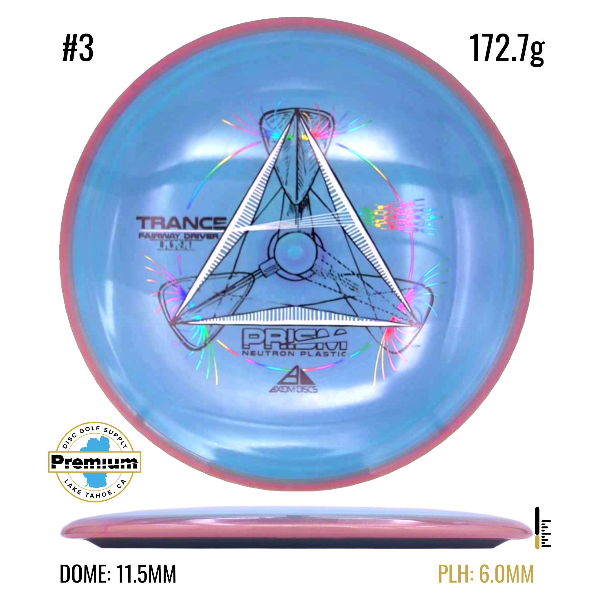 First released as part of the 2023 OTB Open Special Edition discs and again for the 2024 OTB Open, the Trance is now available as a stock offering in Prism Neutron plastic! Developed to be a fairway driver that any player can use, the Trance comes in with flight numbers of 8 | 5 | -2 | 1, making it an exceptional disc for shot shaping – mesmerizing turnovers, dead straight flying hyzer-flips, and reliable flat to turn shots with a straight pushing fade, the Trance can do it all. Now available all year round, get your own Prism Neutron Trance and start carving up the fairways!