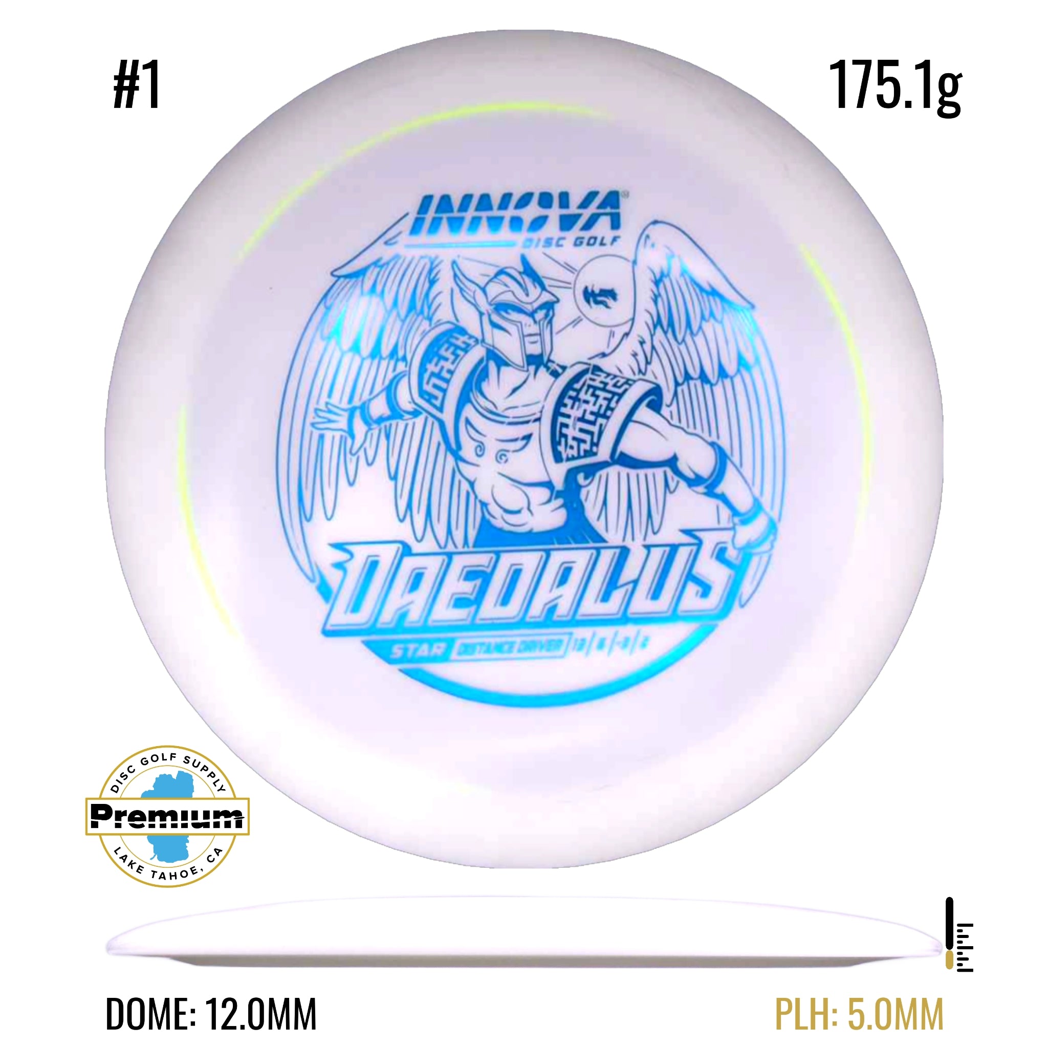 The Daedalus has wings to fly far down the fairway. The Daedalus is a maximum downwind distance driver crafted for less powerful players and doubles as a long distance roller for more advanced players. The Daedalus likes to be thrown low, make sure it doesn't soar too close to the sun.