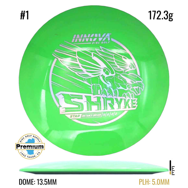 The Shryke is an easy to throw, very long range driver for a wide variety of players. A mild high speed turn puts the Shryke in glide mode, which along with its high aerodynamic speed, give it incredible distance. The low speed fade is also mild, which makes it easy to keep on the fairway. The Shryke is similar to our popular Tern but faster and slightly more high speed stable.